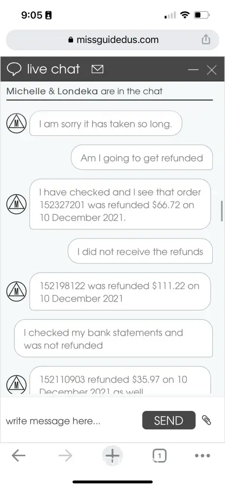i ordered something from a Missguided. it arrived tampered with, and with dead gnats inside of the bag. I contacted the merchant and told them i was going to throw it out as i have no idea whats happened to that bag and per U.S. Code 1365 - Tampering with consumer product, i dont have to hold on to it or keep it in my house. AS soon as i saw bugs, i threw it out. And i told them that. I even have a pesticide company that now comes every two months because i signed a contract for pesticide treatements. Missguided decides to be vindictive, and tries to tell me to send it back AFTER knowing that i threw it out. They KNEW i wasnt going to go back into the garbage to get it. I even provided proper evidence and photos. They closed the chat on me. Missguided has sent me incorrect items, sent me orders with missing items. This is the first time i have actually complained about something like this. I dont ever ask for a refund.
