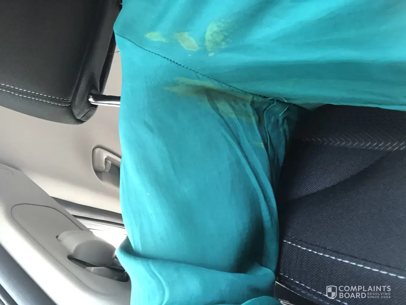 This product claims to leave no white mark but it appears to have ruined my new shirt. I just arrived at work and looked down to see what look like bleach marks all under the arms. What compensation do you offer? Not happy. Can you please get back to me as this seems to be severely misleading advertising.
