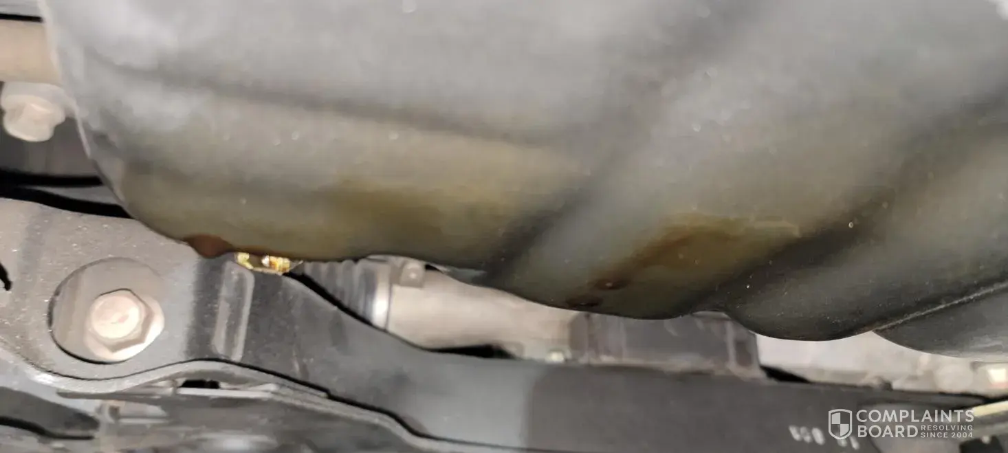 I left the dealership that day without having my oil change performed. I wanted a look and went underneath my car to only find that the engine pan WAS leaking and took a few photos of the leakage.
