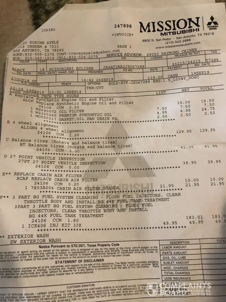 Mitsubishi a customer service at jeremy franklin mitsubishi in independence was completely horrible