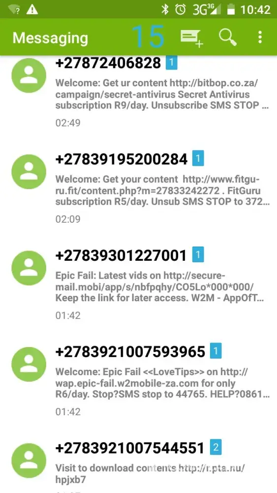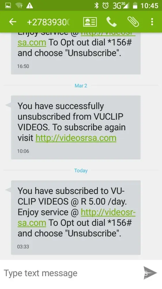 The next morning around 07:00 am I called MTN customer service 173 to query about this the agent told me that yes my number was subscribe to the service but if I am not the one who did it she will cancel it and she confirm that the was no other subscription, but to my surprise on Monday 05.03.2018 my R22, 50 airtime disappeared due to other subscriptions then I called again and the agent told me i'm subscribed to (Drop a HOT 16 TV service, Vrjuice videos and World Cup TV service) and she told me they don't repay such thing cause this are not their products.