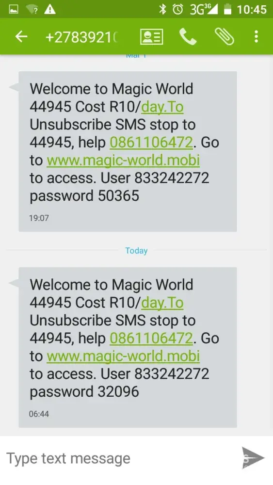 "Please note you obtained Magzone through Mobile Plus. They signed you up for it when they were offereing you a Hisense F20 on MY MTNCHOICE Flexi R55 @ R99 x 24months."