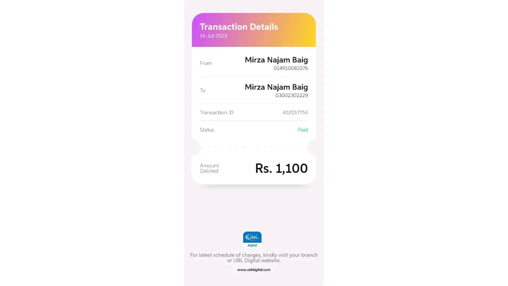 I Have paid amounting to Rs.1,100/= on 14/07/2022 in Mobile topup which was rejected in your record.