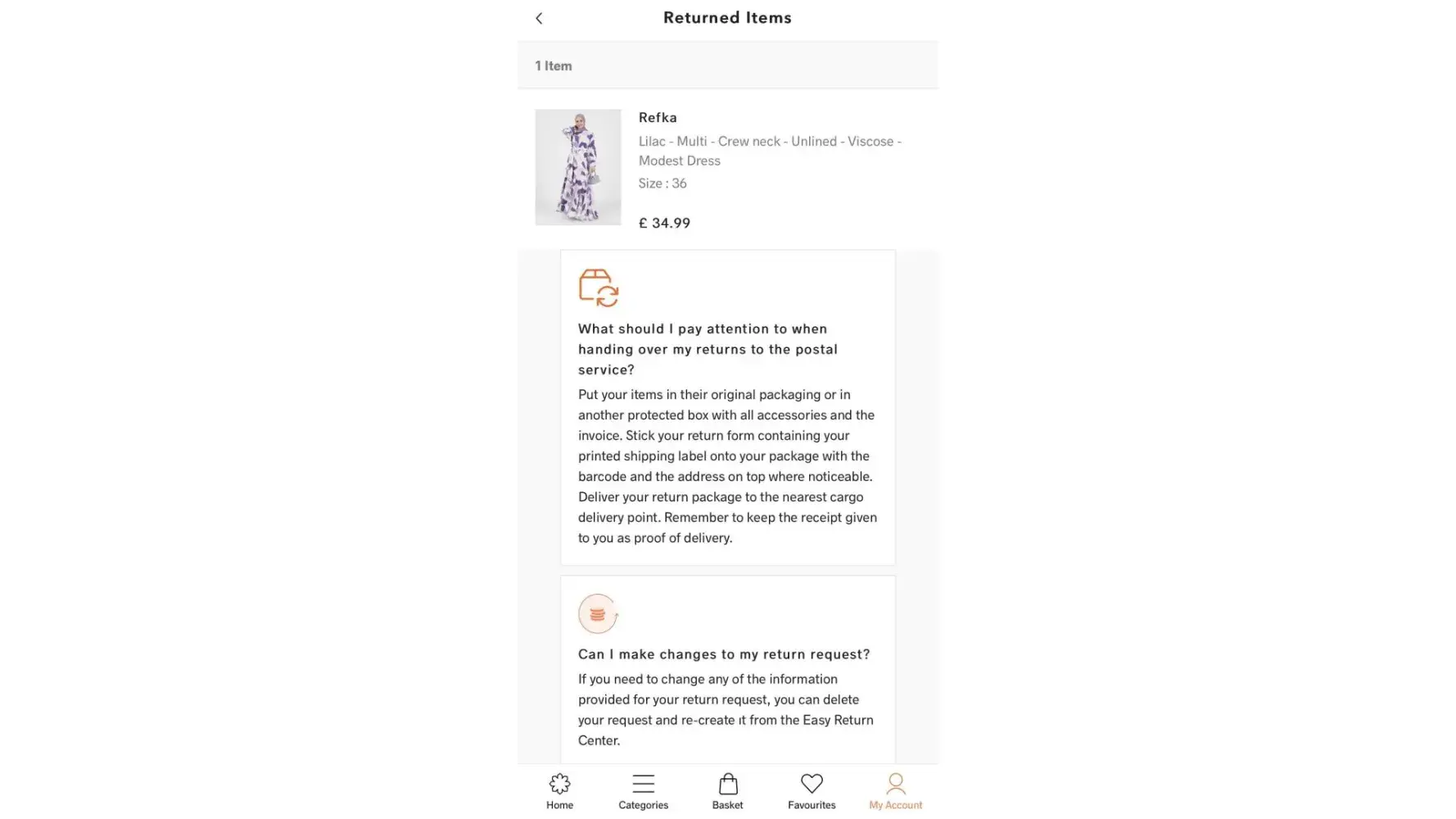 My experience with Modanisa was a complete nightmare! I placed an order in March for three items that added up to ?91. When I received the items, one of them was faulty and did not match the visual description. I immediately wanted to return it, but Modanisa informed me that I could only send it back through UPS and that I had to pay for the shipping, which was ?30 alone. I demanded that Modanisa pay for this fee, but they only indirectly paid for it by refunding me for the faulty item before it was even sent back. I was so annoyed by this point that I wanted to return the other two items as well.