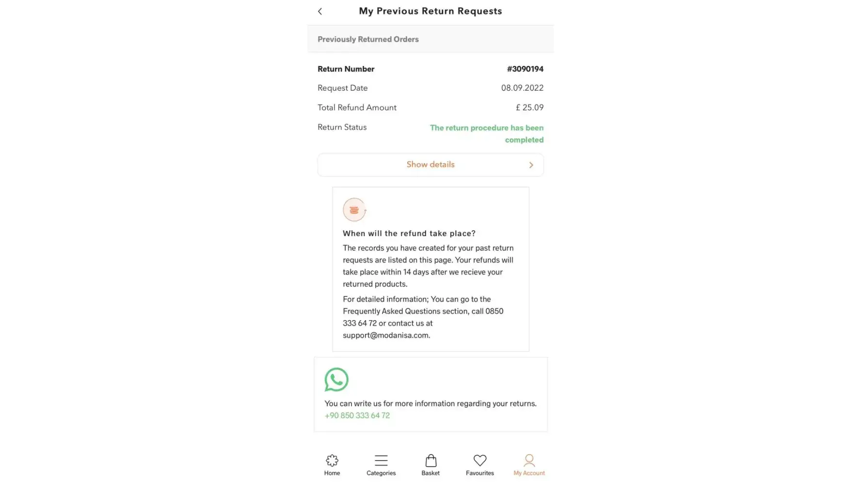 Desired outcome: I wanted Modanisa to return my product and get refund.