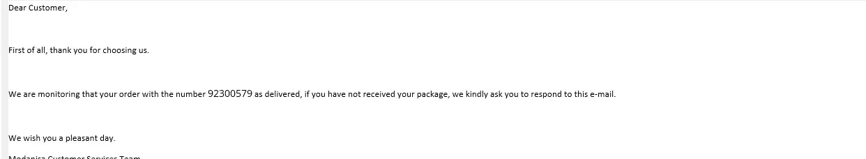 I ordered from Moda nisa and my parcel was showing delivered however, I did not receive the order. They sent me a photo of the parcel on the floor with ‘—‘ as a signature. I explained to them, that is not a signature yet they sent me the same automated message. I have literally contacted them 4 times now on email and the only message I get is the same automated. Which I will paste below. I even translated my issue to them in Turkish l, yet it made no difference. They have the worst customer service I have ever dealt with in my life. Below is the message I received from them 4 times. Baring in mind, each time I explained that is not a signature on the photo and we did not receive the item.