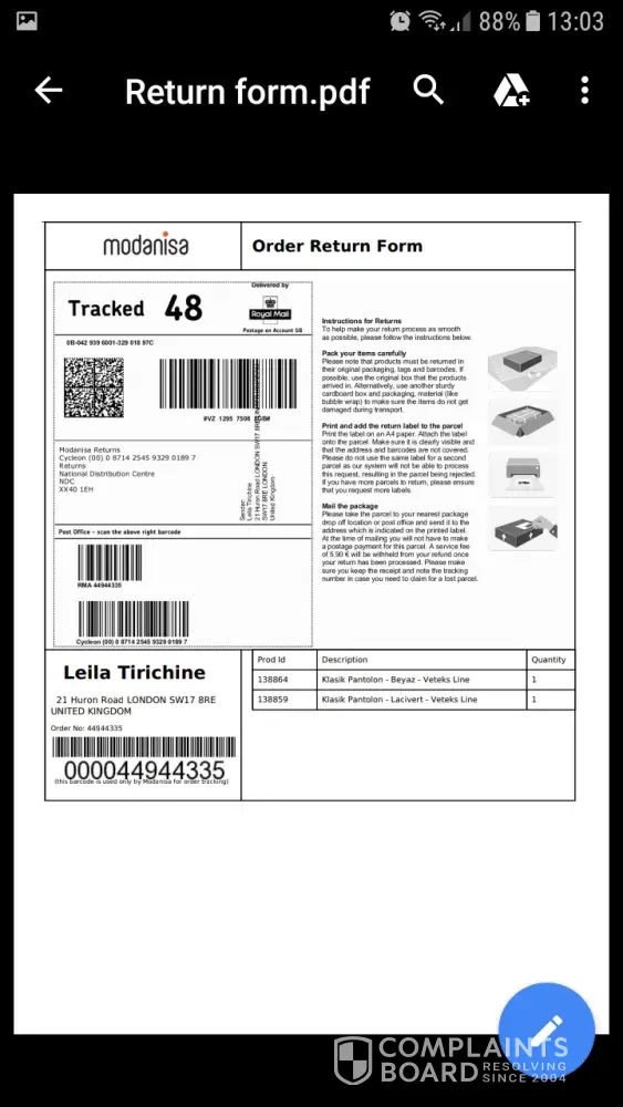 i cancelled the order, and it's been more than a month and the order is still not returned as Modanisa was supposed to contact the delivering company.