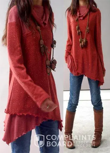 I purchased two clothing items online, and was extremely disappointed with the quality of both. The shirt was not the length is showed in the online pictures. It was advertised as red, but it is red and pink. The longer dress item was two different shades of blue, which is not how the dress was shown on your website. I am returning the items and believe I am entitled to a 100% refund.