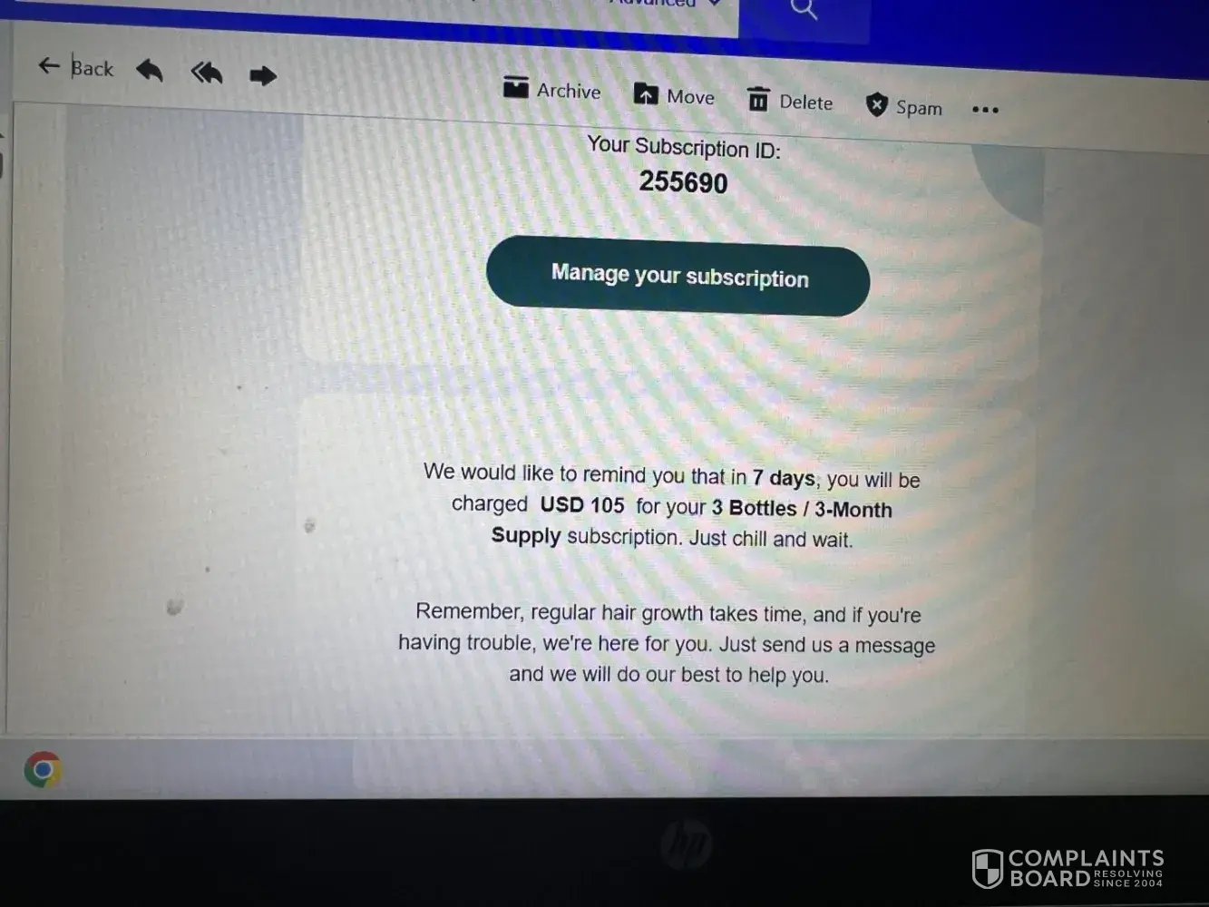 They sent me an order after my account had been closed. I closed my account because the products didn’t work for me. I didn’t want to continue the usage of these products. This order wasn’t initiated by me.