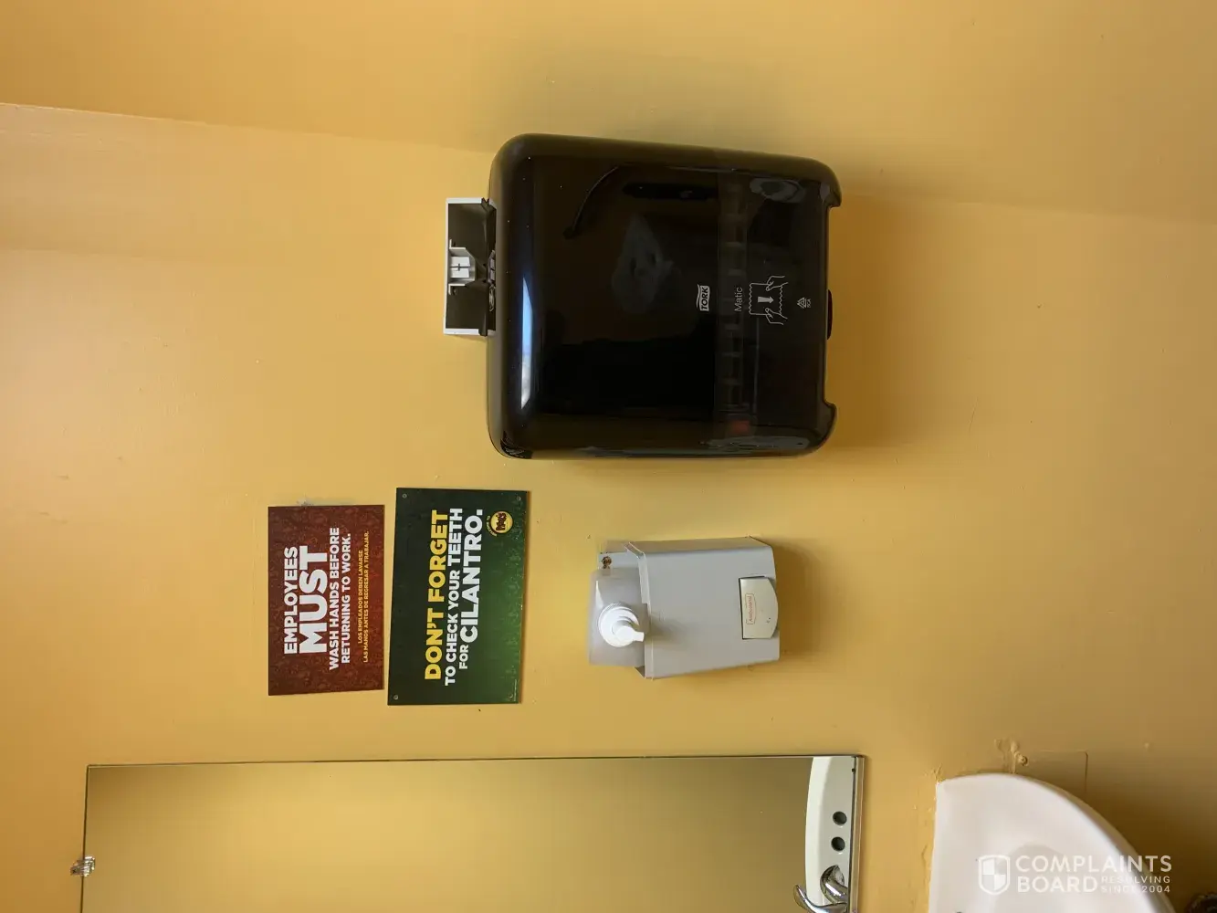 Upon entering we were not greeted with the traditional "welcome to moes ‘. Looked on wall menu for the quinoa bowl price, there was none, only a picture at the order counter. I asked the server what was the price, he said he wasn't sure, maybe around $10...never verified. Placed our standard burrito bowl order. Got to the salsa bar...it was soooo messy. ‘Went to the restroom and was disgusted, two pieces of TP left, no back up roll...no paper towels...soap dispenser broken will hanging on wall. How could the staff clean their own hands when there was no supplies for the customers...gross. Managed to get one pic