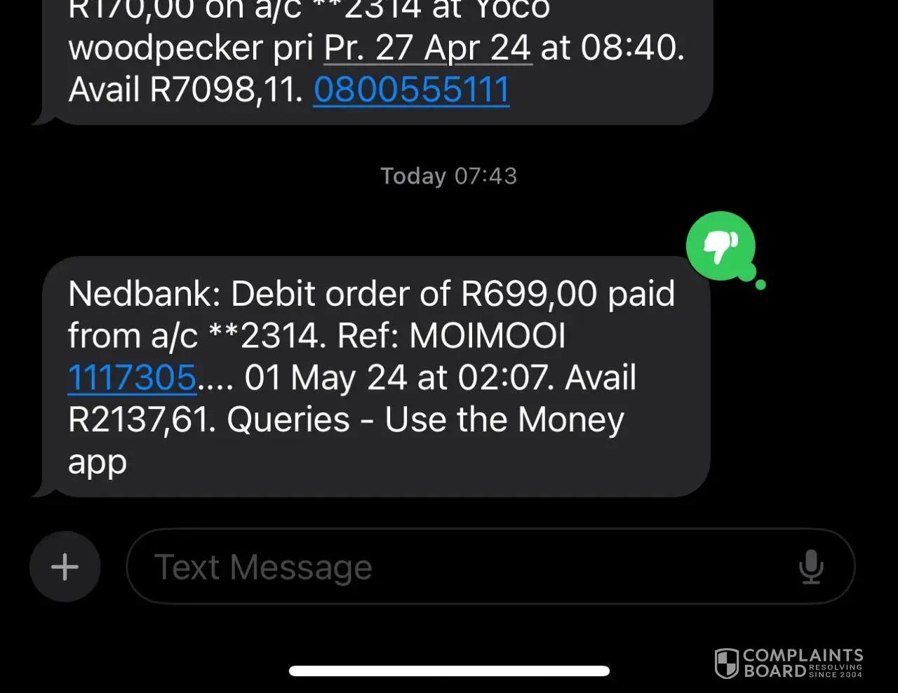 Read full complaintUnauthorized debit orders