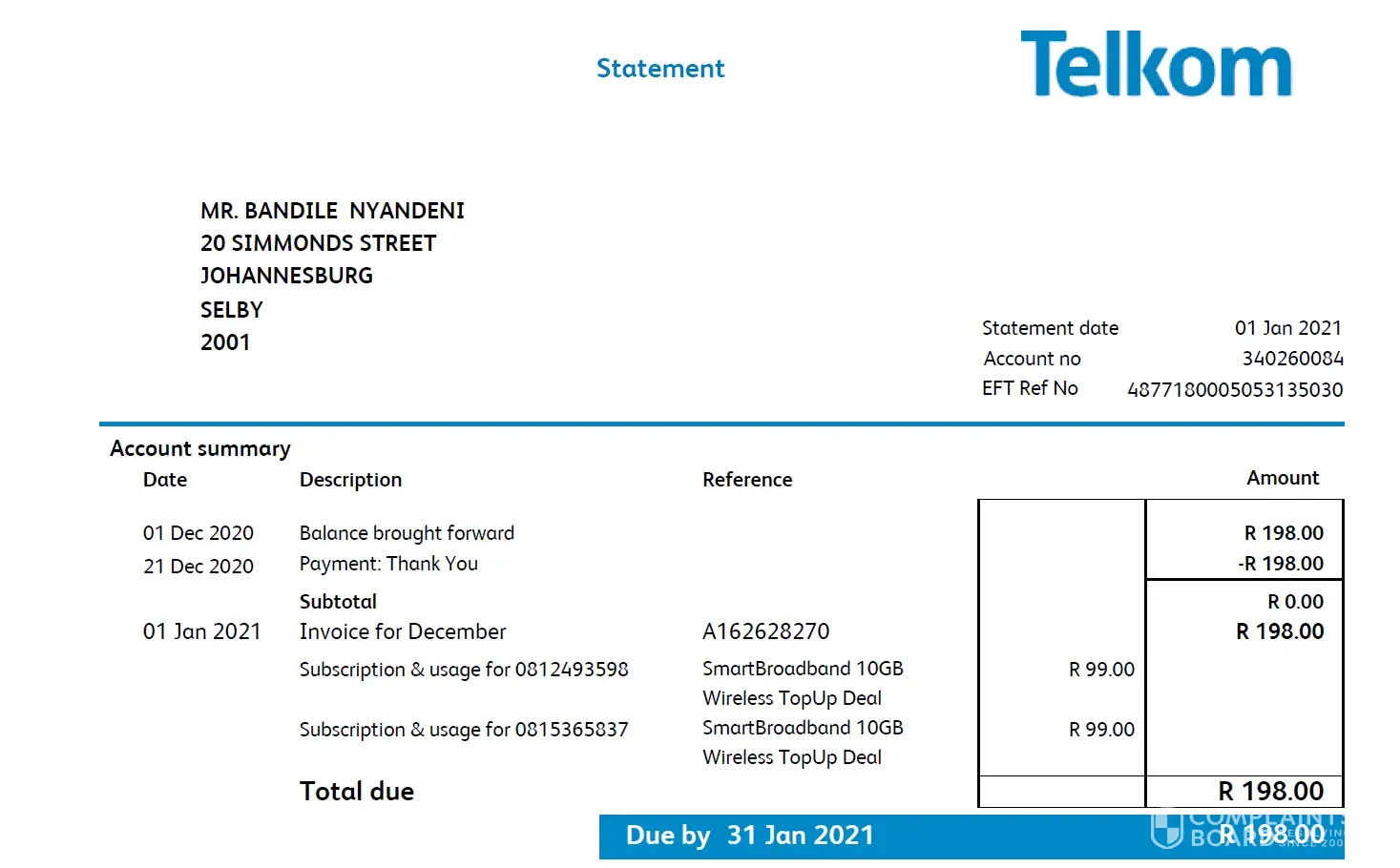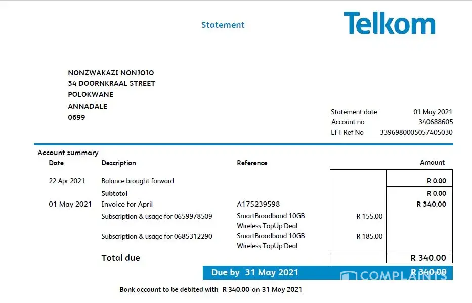 *Application for Telkom contract, successfully approved 17 -18 June 2021.I was advised of the R149 admin fee, that was to be debited from my account on 24 June 2021.I received confirmation of the success of my application via sms & email.