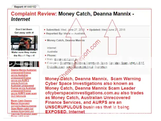 Pioneer of cyberspaceinvestigations.com. Au additionally exchanges as Money Catch, australian unrecovered finance services, and aurfs are a deceitful business that is being uncovered.