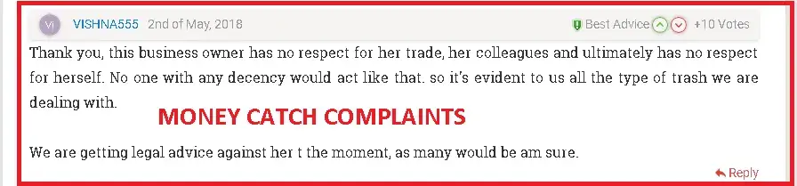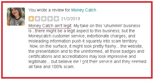 Oh, sure because we all expect a scammer to admit the truth online and that they run a scam business. Stop the scam Money Catch, even your name sounds like a total scam. Zero moral compasses with these people from Money catch, managed by a deranged lunatic from what I see online too. Not ok.
