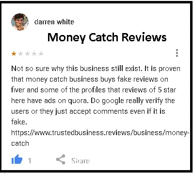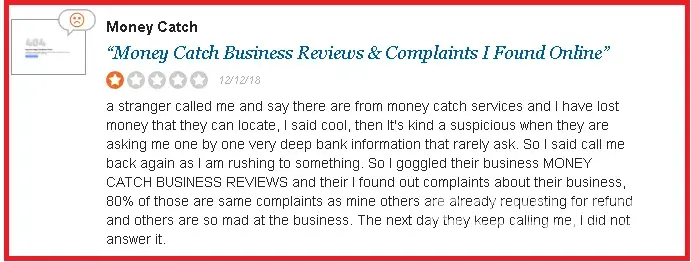 I found it a bit weird because the details they are asking are too personal especially when it comes to bank details. So I asked some friends and said try to google the business reviews first before you provide the information. Nothing to lose anyway because there is money waiting for me. So I tried searching "money catch business reviews" and then boom right into my face. The business who called me has a lot of complaining about they are being scammed. Very scary right so I called my friend to tell what I have found and he said "how come? As I see good reviews about them" I said "really?" so I dig deeper and it really shocked me as what I have found out that all they're business reviews saying good about them are all paid actors creating fake accounts with fake profile picture those persons never exist.