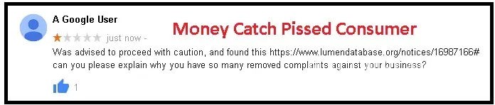 this money catch business are 100% fake - they are buying fake google reviews just to let public know that they are not a SCAM. see attached image