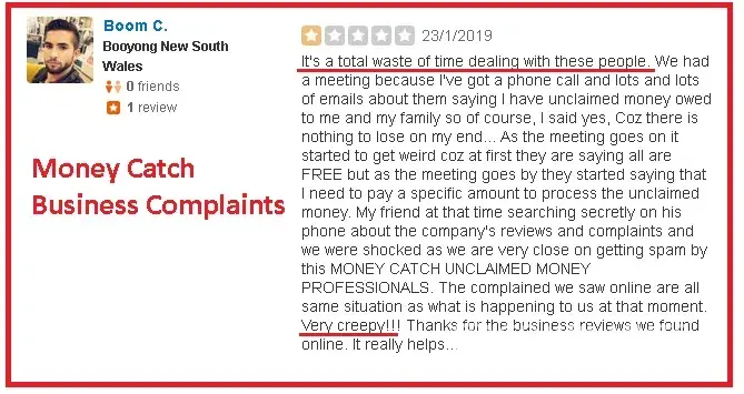 Money catch lost money detectives are a fake business. They are 100% scammers. The modus is they are pretending to be lost money detectives in nsw australia and they will say that they have unclaimed money waiting for you to be claimed, of course, they will ask for your personal banking details and then after few days, you will notice some huge losses on your account. And the unclaimed money that is supposed to be yours. They will claim it as well. Total scam. Never trust them.