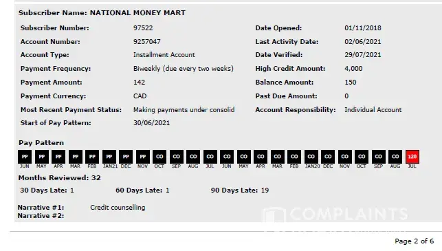 HOWEVER, national money mart shows up my transition credit report despite having paid off the debt in full months ago. The other credit agencies / credit card that were involved in the plan have KINDLY removed from credit reports.