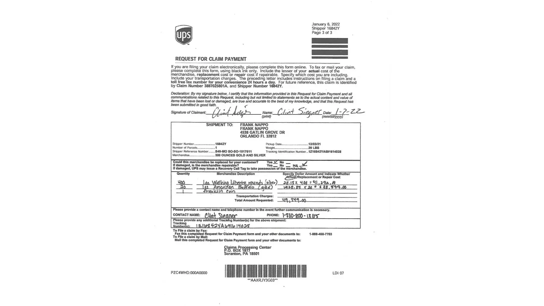 This company Money Metals has refused to file an insurance claim due to the non-delivery of an order of gold and silver worth $49,849.00. The order was shipped thru UPS which was diverted to another address by UPS without any request from the shipper Money Metals. They refused to file a claim with UPS for the non-delivery of the order. I had to file the claim and end result was that UPS couldn't Guarantee the delivery which was reverted to another address by someone at UPS. The company Money Metals did not have the parcel insured thru UPS and didn't even place a value of the parcel UPS didn't reimburse me for the total loss but sent a check to Money Metals for $100.00. Money Metals refused to file a claim with their 3rd party insurance company. As their vice president told me that they weren't responsible for the loss UPS was. Even though their policy says has that they Guarantee delivery