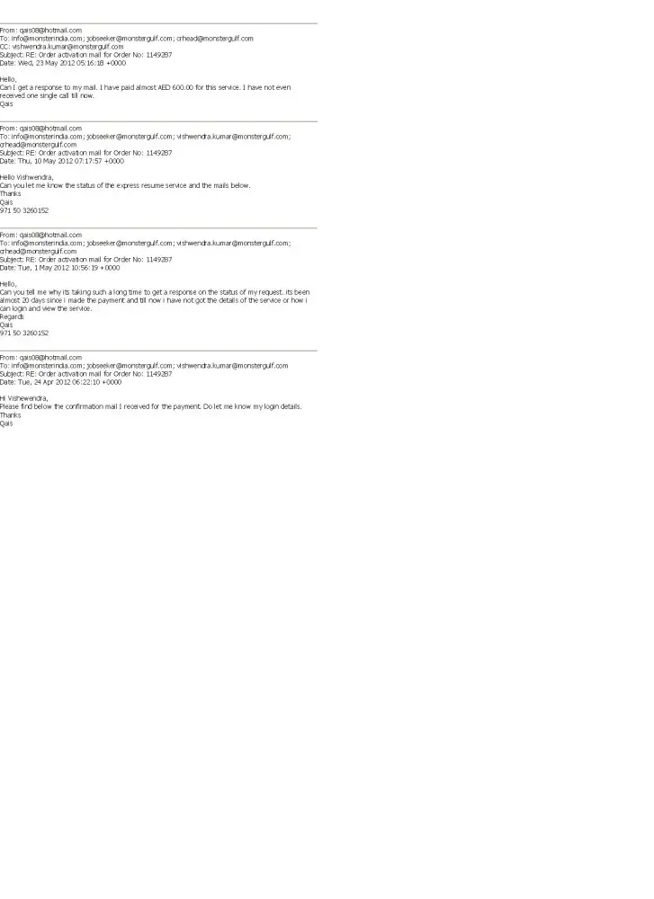 After I paid, i received no more calls nor email. That's when i realized i was scammed. I search for complaints in the internet and found numerous complaints about this monstergulf. I even saw one with the same case as mine. I will paste the emails transaction for you to identify, if you find the same emails please refrain from paying. This is a scam and I dont want anybody to be fooled by this people again.