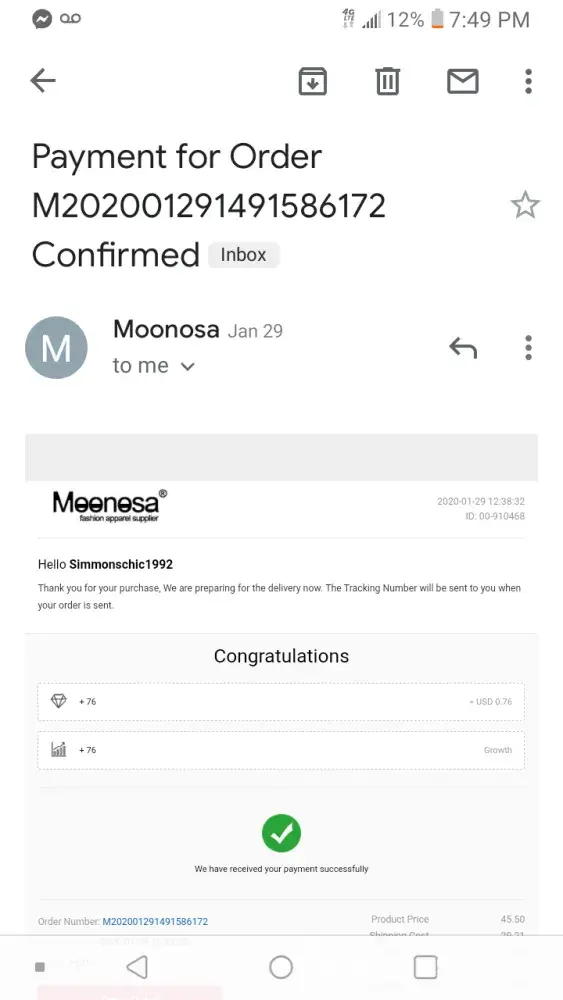 I made an order through moonosa but never got my package because they put an unrecognizable address which of the one wrong of course in the usps post office man said that it not recognized as a delivering address I need my money back or. they need to resend I. D number W202012144013629200. Transaction I. D 8NK36394ML809540K the total amount was $62.56