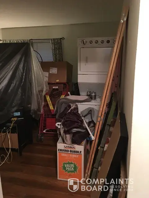 We insisted that they move out the washer/dryer and of course there was a mold outbreak. My husband came back the next day when the workers were there "cleaning" the mold off the walls with a can of cleaner clearly marked "not recommended for cleaning mold". My husband insisted that this was not acceptable...so they ripped out the ceiling and walls in these areas and re-dry walled the same day without letting it dry inside the walls. So, I'm not sure why we were surprised when we saw mold growing again in the closet 3 weeks later on top of the new dry wall.