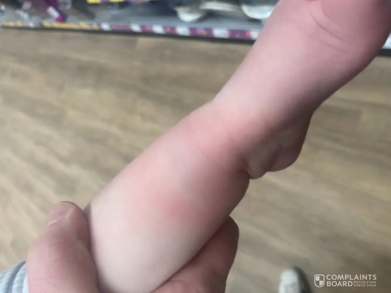I took my children shopping and placed my daughter (11month old) in the trolley. While shopping I realised her leg was trapped in the back of the seat of the trolley. I notified a member of staff to ask for help and I can not complain about how well the start all were to come and help. After pushing and pulling and trying to free her leg with no result I rang the fire brigade as my daughter was very distressed as were my 2 other children who were with me. Luckily a lady shopper came over to help and noticed that a part of the seat was snapped and this is how her ankle had managed to get through the small gap, the lady and a male member of staff then tried pushing and wiggling the broken seat to free her leg which they eventually did. The male member of staff was very helpful and friendly with my daughter trying to reassure her. He leg was swollen and bruised and she wouldn't allow us to touch it afterwards. Other members of staff were also very helpful afterwards and gave my son sweets while we seen to my daughter I can not fault the staff although, there seemed to be no first aider on the premises as I was only given a wet flannel and told to put it around my daughters leg and to get it checked at home. Even though the staff were very helpful afterwards I feel like this incident could have been avoided if the trolleys had been checked. It would have saved me and my family a very traumatic shopping experience.