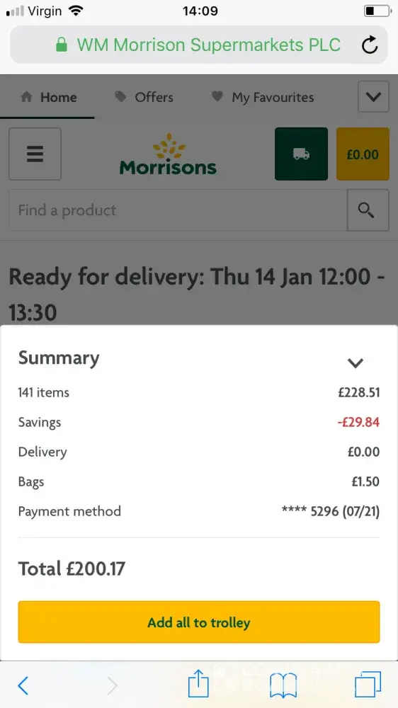 My daughter does my shopping online for me along with hers as I am now hard of hearing and cannot have deliveries to my own address as I cannot hear the door and she spends hundreds of pounds with Morrisons as you can see from her deliveries.