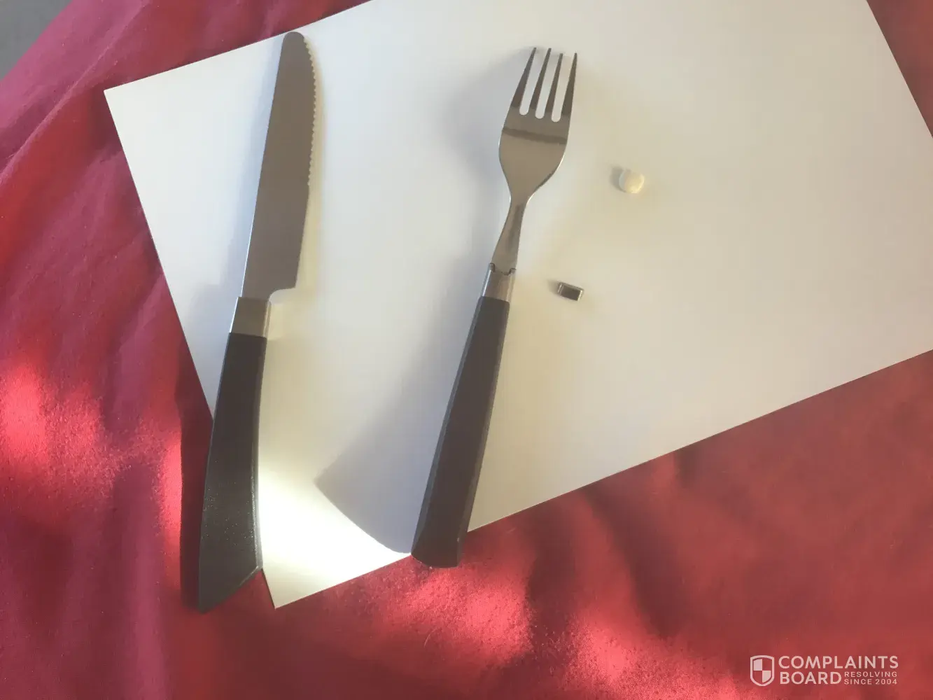 Hi, a pretty furious this morning after eating my breakfast. While eating my egg on toast this morning using a cutlery set I bought from Morrison's in Paignton, a metal segment snapped off on the fork without me noticing, I then crunch into a solid metal lump that had broken off the fork and it snapped my front right crown right off and now have pain and need to get it sorted, which is not easy at this time. How can you sell something like that so flimsy that it snaps off, I only bought the set 3 months ago and this is disgusting!