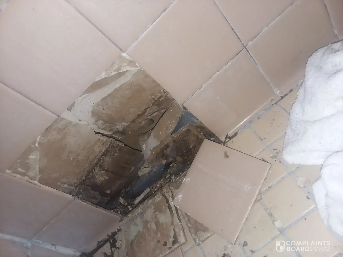 I stay in the motel 6 in merced ca. South side of town for a easter celebration with my family the next day. It was around 5 pm when I got the room. It was a double non smoking room that the front desk said was just cleaned. Me and my girls went in and the floor was dirty, the sheets had stains and the smoke detector was gone, there were no towels I had to go ask for them. I went to take a shower in the morning and tiles fell off the wall. I told them what happen and they charged my card more money. This is crazy I called and they told me it was for damage I caused to the room. I told the man on the phone I didn't damage the room, but he just kept saying well that's why they charged you for. I'm very angry I want my money back. I have picture of everything. The wall behind the tiles was covered in mold and crumbling apart.