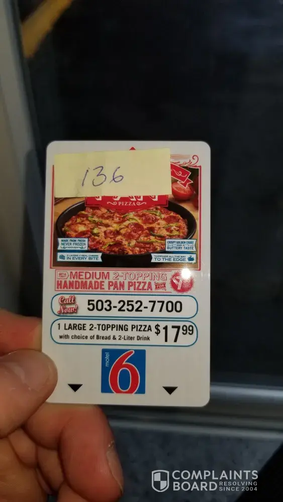 I have stayed at this motel 6 frequently and the last visit I had a bad experience and was told i would get a 50% discount next time I got a room. I went recently and they didn't have it on record. I still paid full price and the room wasn't even clean. Dead roaches in bathroom. Not happy. I want someone to be able to give me a free room now for this.
