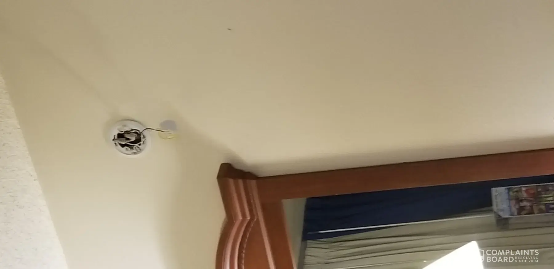 Room has hole in bathroom door, no smoke detector, wires hanging from wall. Very disappointed in this place. Will not be staying here again. Great location, that's about it