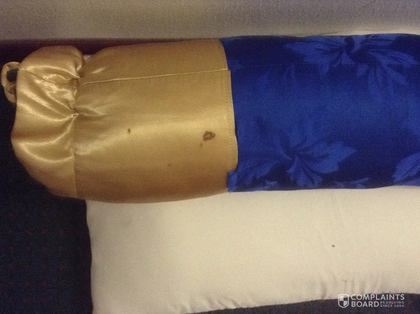 I inspected the rest of the bedding to find a possible blood stain on the sheet. Luckily our daughter had her sleeping bag with her, and a blanket. This is what she used to sleep on top of the so called clean fresh linens this hotel offers their guests. If sleeping in our car was an option I would have done that instead.