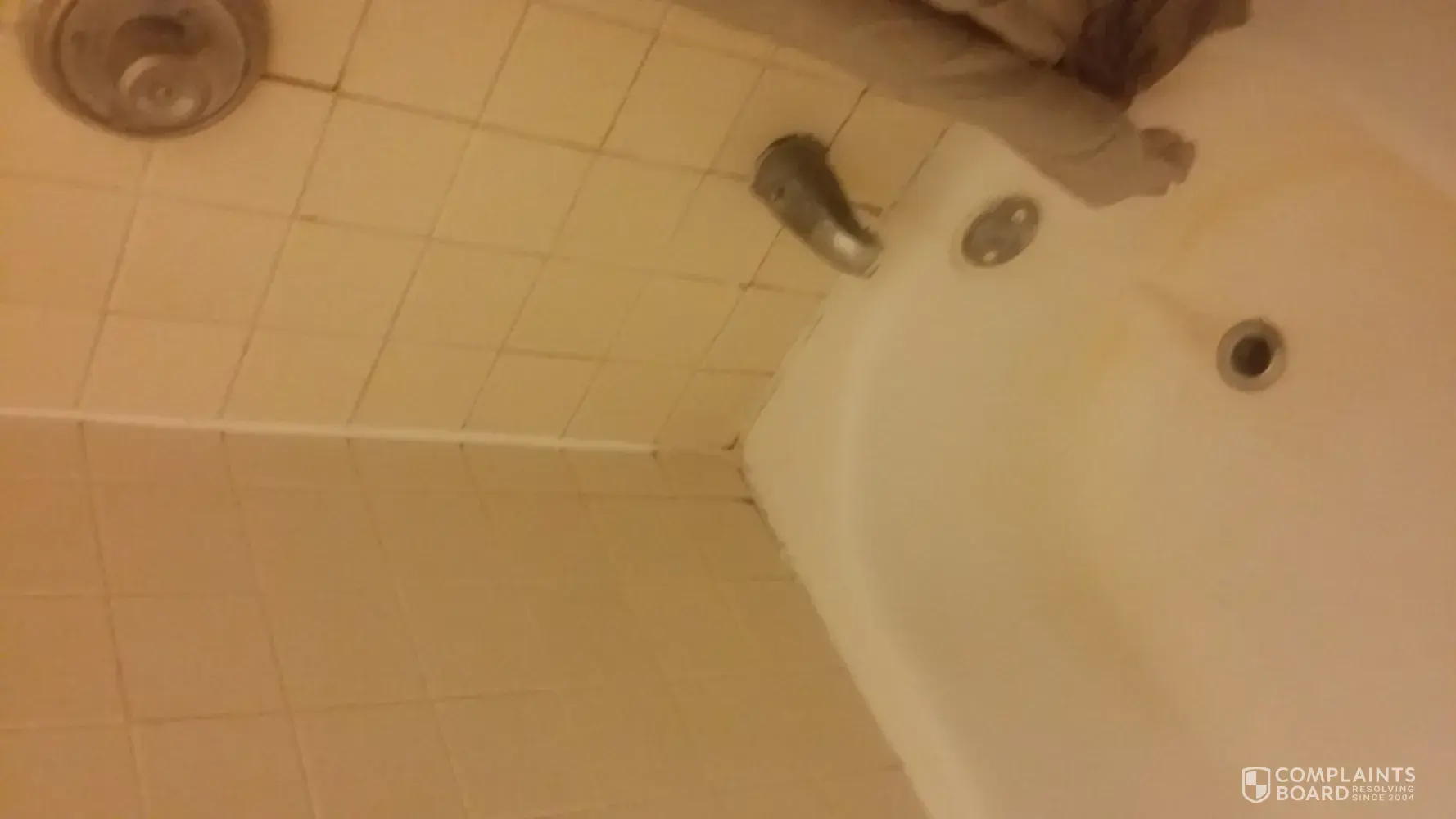 I had noticed when I got into the room that the bathroom faucet had been [recently?] replaced and was not matched to the sink. It was ill-fitting but worked fine and I had no problem with that. Then the next morning I tried to take a shower.
