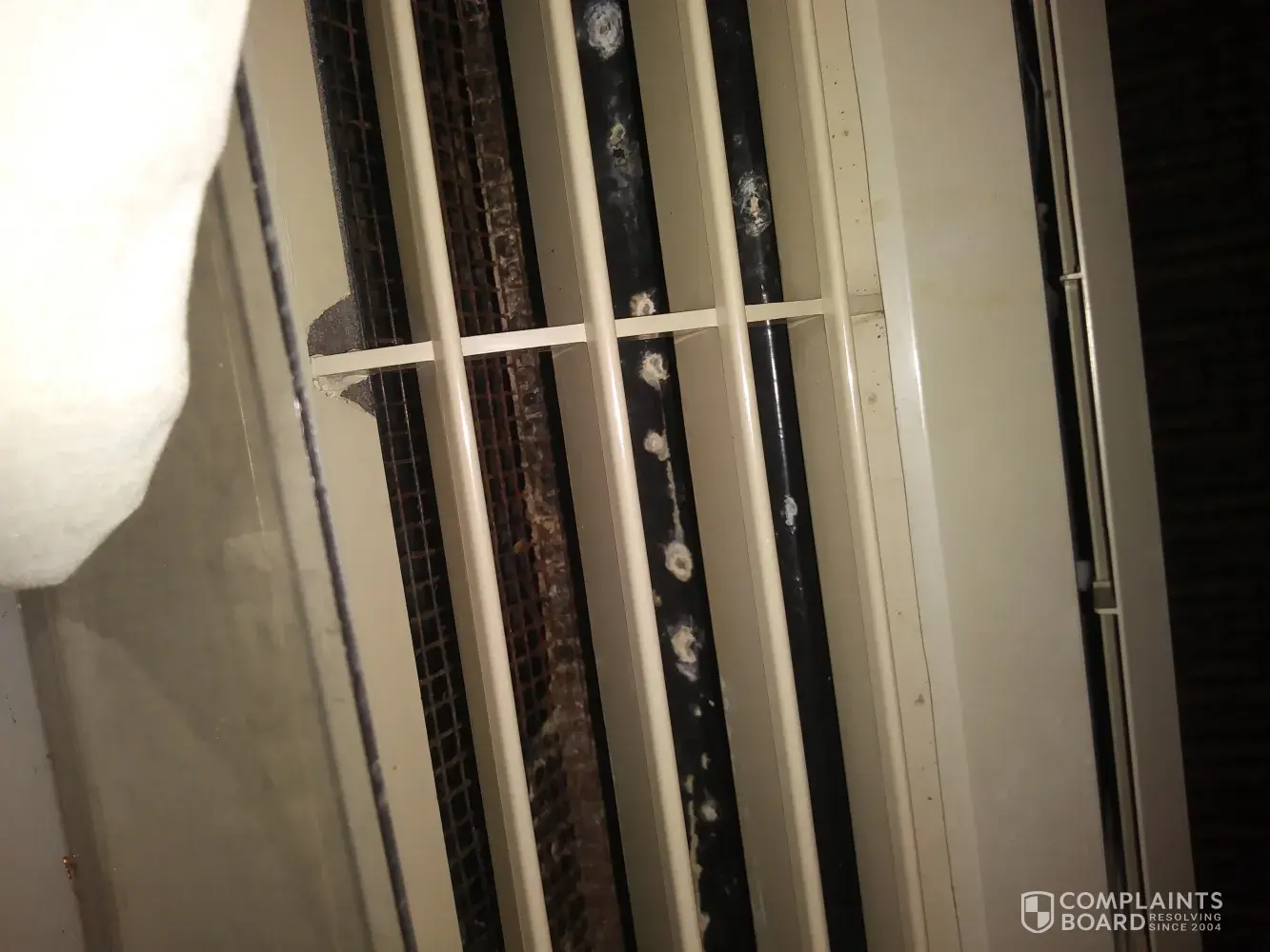 I later noticed that the malodorous bleach scent was a cover up for the feces scent noted every time the room air conditioner/heater system went on.