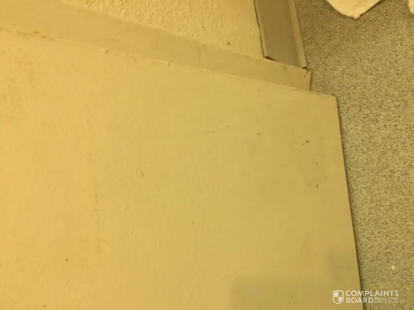 When my husband and I walked into the room it had a bucket under the air conditioner (which my husband had to empty), it also had water on the floor, holes in the wall, door jam dented in and rusted, chair had stains on it, toilet seat not on completely.