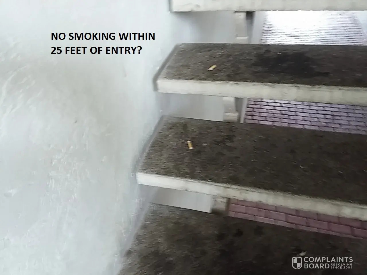 And, there are signs posted requiring no smoking within 25 feet of the entry, while every corner and nook around both buildings are equipped with huge ash trays which are cleaned regularly. There's an irony.