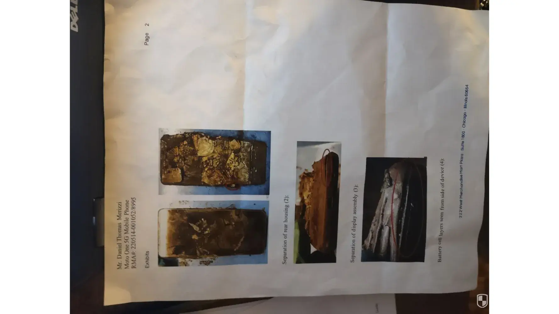 Photos attached are of the letter I received from Motorola in response to their investigation regarding phone that spontaneously combusted.