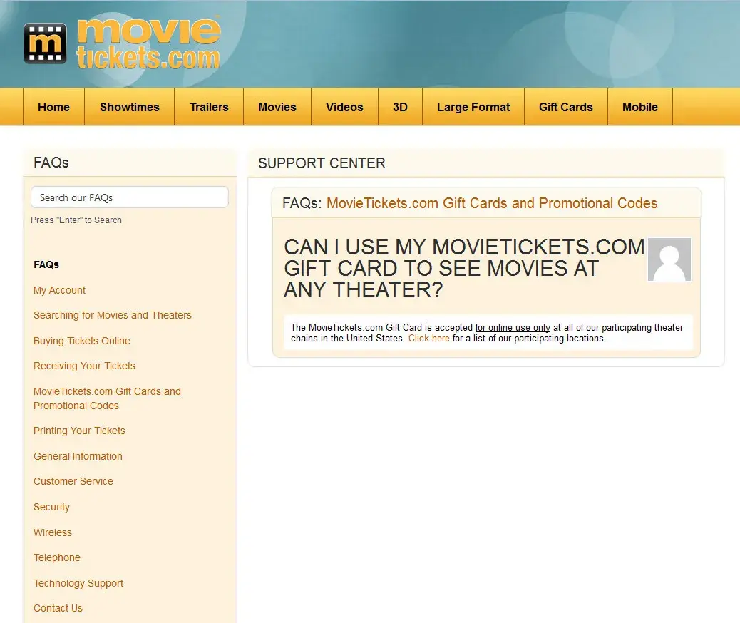 I am also having this problem. My mom got me a $30 movie tickets.com gc in 2017 but I never got around to using it due to a rough couple of years but fast forward to just a few days ago , I said to my mom “hey I still have that movie tickets gift card you gave me, we should go see something†cause we hadn’t been to a movie together since before my grandma (moms mother) passed away which was in 2009..going to the movies is something the 3 of us did a lot so I was really looking forward to