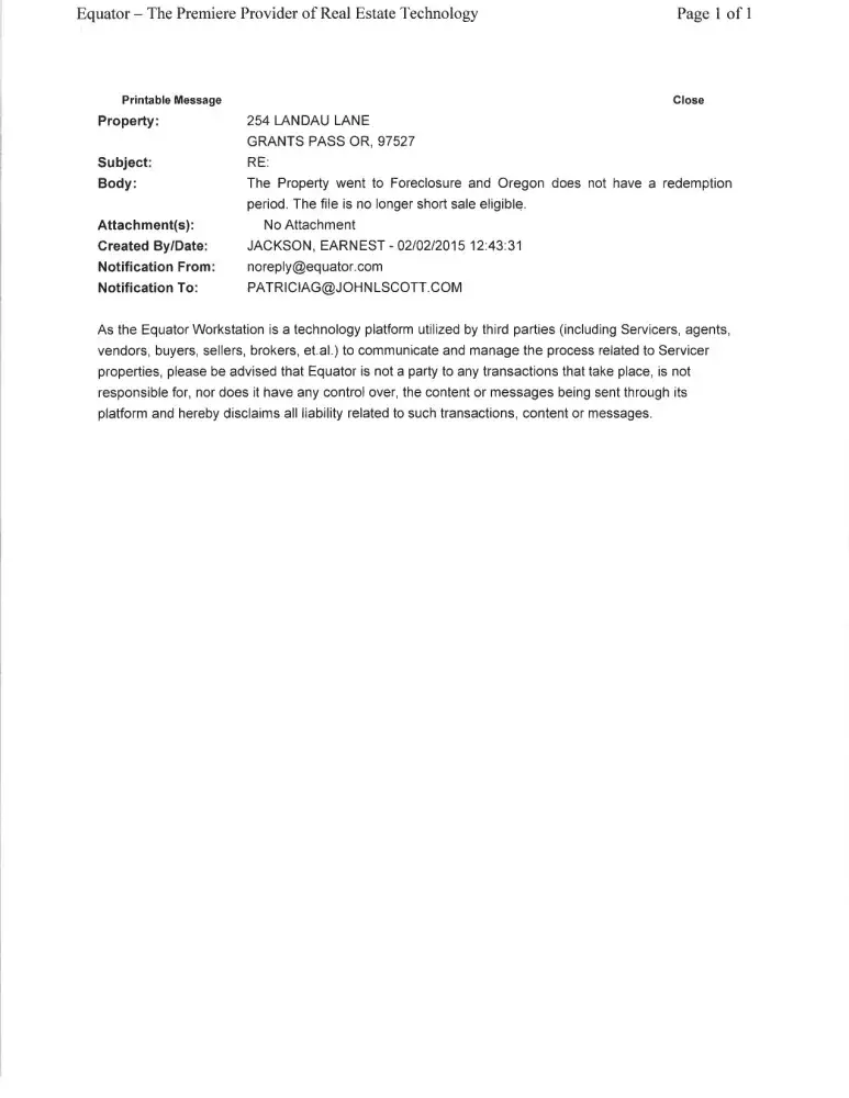 I have been in escrow for the purchase of a short sale home in Oregon since July 2014. The delay in closing has been primarily due to the second mortgage bank (US Bank) not signing the loan documents, although they had previously agreed to the terms of the short sale with NationStar. In January 2015 the home moved to redemption status and was under review by an asset manager and then by a "negotiator" (Earnest Jackson). This prolonged short sale process was well known by this negotiator because after my first offer was accepted Nationstar brought in another appraiser and raised the price (Earnest Jackson sent the notice of the increase) on the home in September 2014. I raised my offer and it was accepted. On February 2015, the loan review was declined by citing that there is no redemption period in the state of Oregon. The reality is that there is a redemption period of 180 days in Oregon and the home can be sold as a short sale until June 2015 as long as the seller agrees to proceed with the sale. The listing agent informed the Nationstar negotiator that there is a demotion period, but he has refused to reopen the review process, which forces us to wait until the home goes to foreclosure in June. If there is no redemption period, why does Fannie Mae still list the home as in redemption and allowing 180 days for the home to be sold prior to foreclosure? Does NationStar receive more funds by waiting for it to foreclose. I am seeking legal opinions on Monday and if they may advise me to file a lawsuit for negligence. If you have a familiar story, email me at [protected]@yahoo.com. I have filed complaints with several agencies and contacted the congressman in Oregon who is investigating.