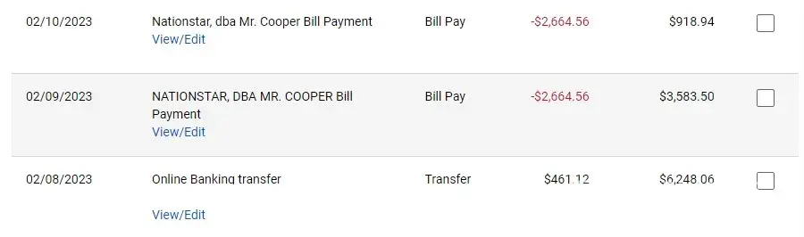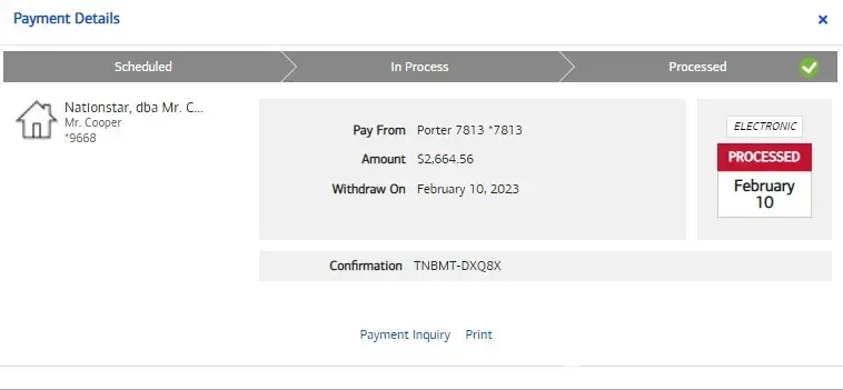 I make a payment to Mr. Cooper every two weeks. The auto payment is $553.00, the code at the end of my withdrawal notice ob my bank statement is: NSMJPM15549769,