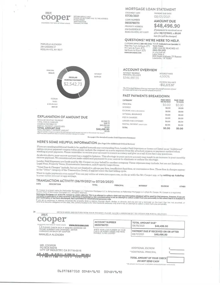 On Wednesday, February 20, 2021, I called Mr. Cooper to clarify the matter of being short on escrow. I was transferred from one person to another, several times, and yet nobody could get us any answers.