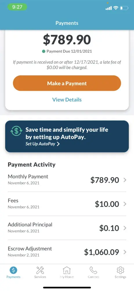 2021 Mortgage February 18, 2021 after sending them an email about late fees, and they put it on my account again.