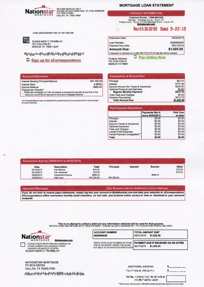 Nation Star is full of foreign people who don't know what they're talking about, neither had formal training, or have the common sense to utilize. It scares me knowing that people from abroad are going to be the ones dealing with our situation with no knowledge of how to do things. They are "Monkey Button Pushers" going by a script they either can't read correctly, or don't understand. These mortgage places need to give jobs back to Americans who know how to speak english, with the knowledge of what to do, and competent enough to know the difference.