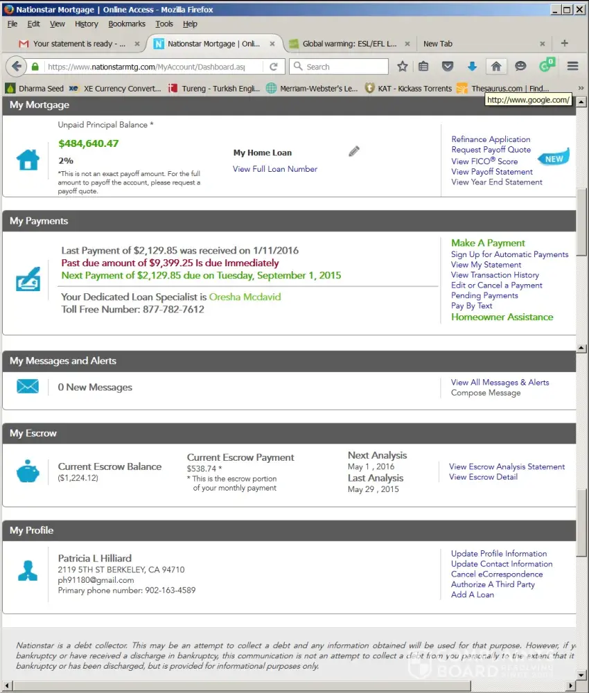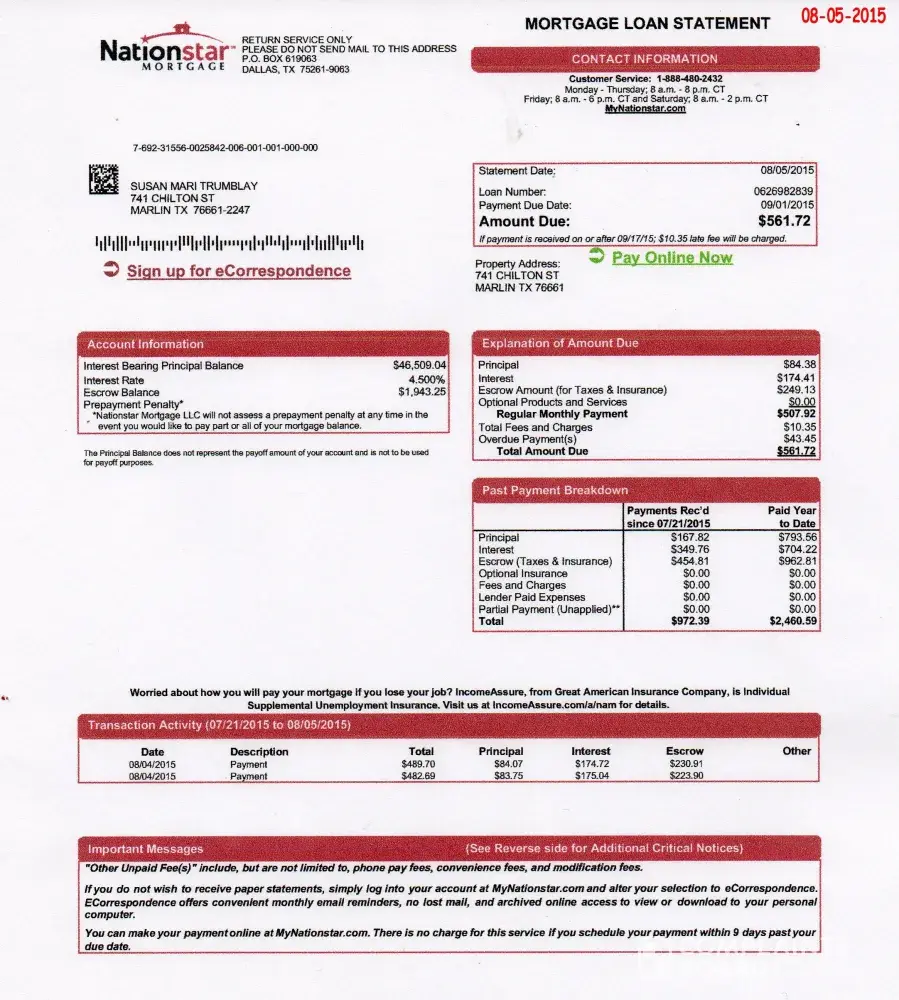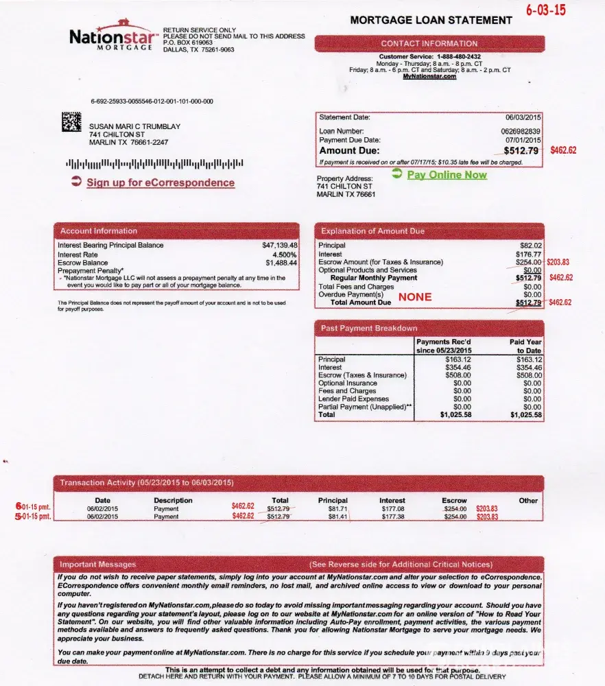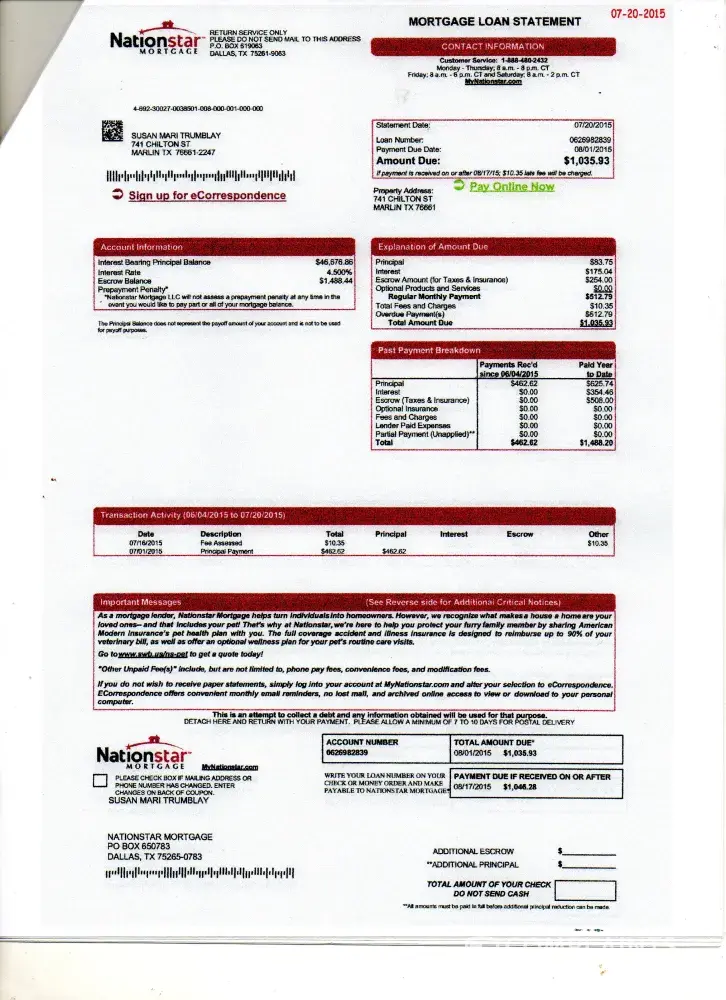 Our mortgage was moved from Ocwen (let's not even go there) to Nationstar. All started fairly well. Then about 4 months ago, the letters, emails and phone calls started about: do you need help paying your mortgage? your payment is late!