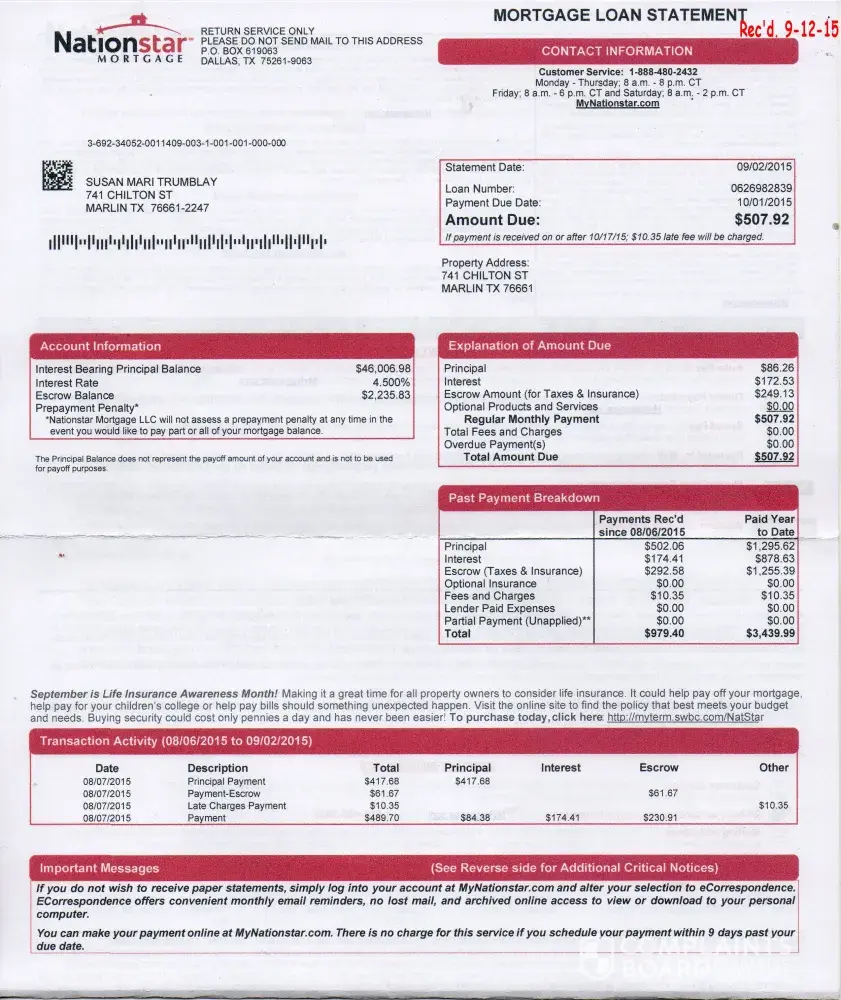 We all need to keep after these low life and make sure they are aware that we know they have no standing to foreclose or collect a mortgage payment from us in the first place. If you are being serviced by Nationstar, there is a ninety nine percent chance that they were given or bought your loan for pennies on the dollar and you really don't owe them anything. If anyone needs any help in going after these creeps, please email me at d.casey17@yahoo.com.. Good luck and due diligence, we must all stick together if we are going to eat this elephant one bite at a time.