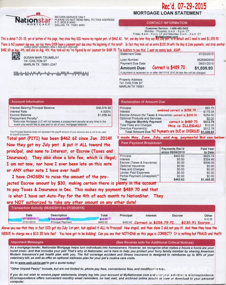 If you have a Nationstar serviced loan or a Bank of America/countrywide loan and are interested in starting a class action lawsuit against these ### suckers. Please contact me at once and i will get the ball rolling. Have you seen the pages and pages of complaints against this company, they are lawless and need to be taken to task for their abuses. The courts are actually allowing them, a debt collector, to foreclose on innocent homeowners, this HAS TO STOP and i intend to fight them tooth and nail anyone want to join me? Enough is enough, you don't need to pay this servicer as the loan and trust were paid in full and the Pooling and Servicing agreement were more likely than not, timely submitted, which means that any assignments after the date of placing into the agreement had expired anything that follows that date is null and void, I can almost guarantee you that if your loan is a part of a securitized trust, it was paid in full and null and void. I had a Bloomberg audit of my loan done and so can you, if you're interested in either above referenced answer to your present mortgage problems please email me at d.[protected]@yahoo.com and i will provide you information.