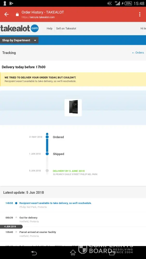 I have been waiting for a delivery that my order tracking showed that the delivery will be made today on a Tuesday before 17h00