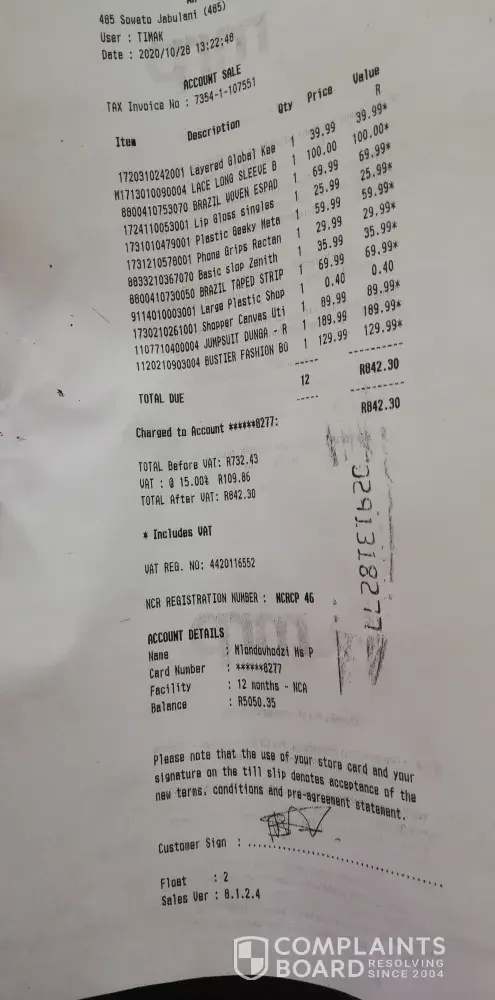 Am very much disappointed with mr price and their cashiers whom are busy promoting fraud at protea glen mall and jabulani mall in soweto, I just do not understand if is how mr price taught them or they are just ignorant, how does one sign for purchasing clothes while isn't an account holder and u approve, worse with a total different signature. Something needs to be done to these negligent cashiers of yours, unless if you mr price condone fraud as whole... I won't rest until I get justice, am very much unhappy with everything including the attitude I got when I went to report, y'all better train and hire people who can do their jobs properly or else one day ur businesses will go down because of this kind of attitude