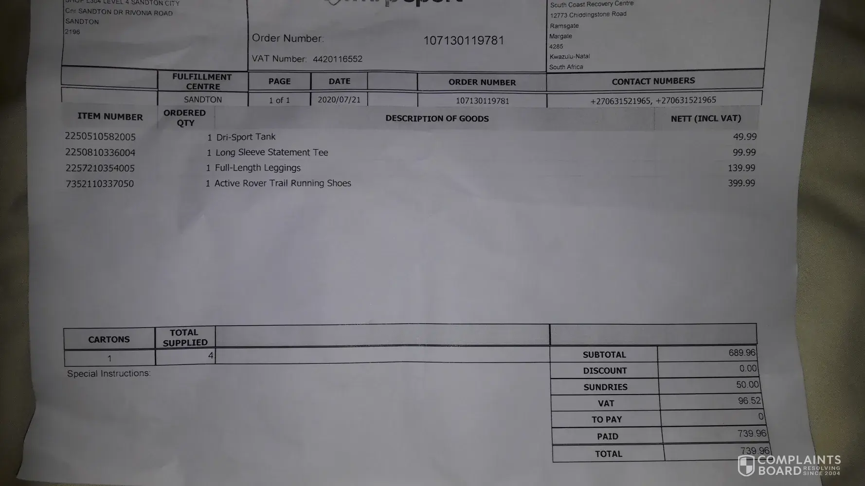 Mr Price Group / MRP Wrong order delivered and shockingly bad customer service support